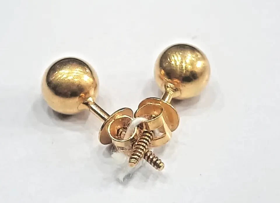 18k Solid Gold Round Ball Stud Earrings Screw Back
