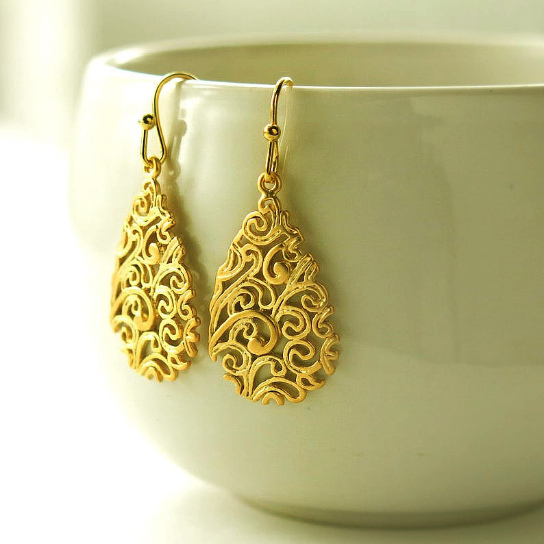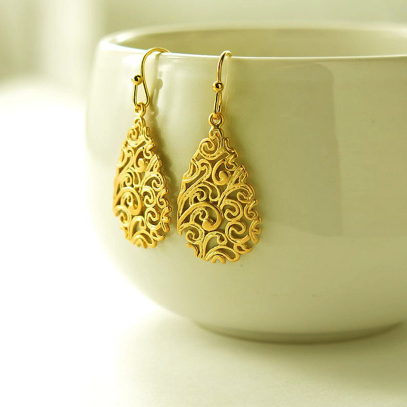 NAME: BEAUTIFUL HAND CRAFTED GOLD EARRINGS