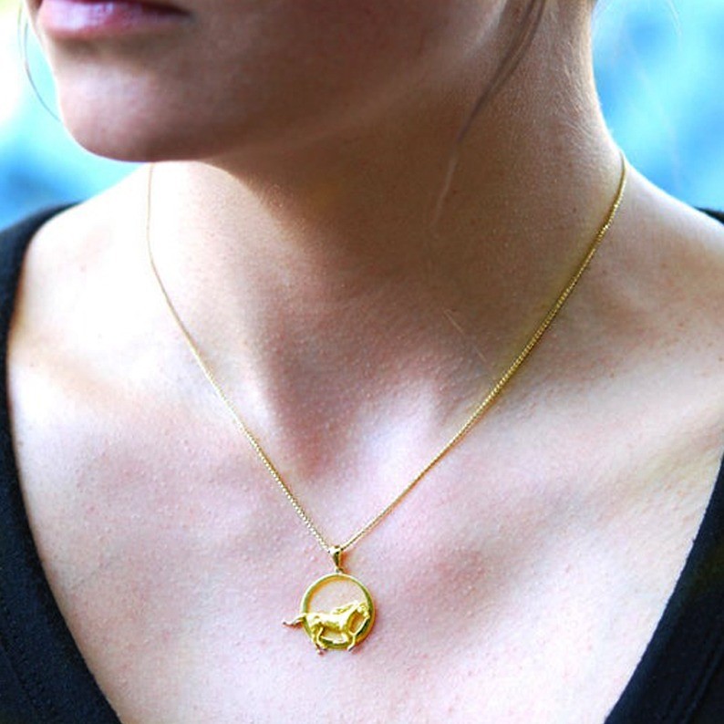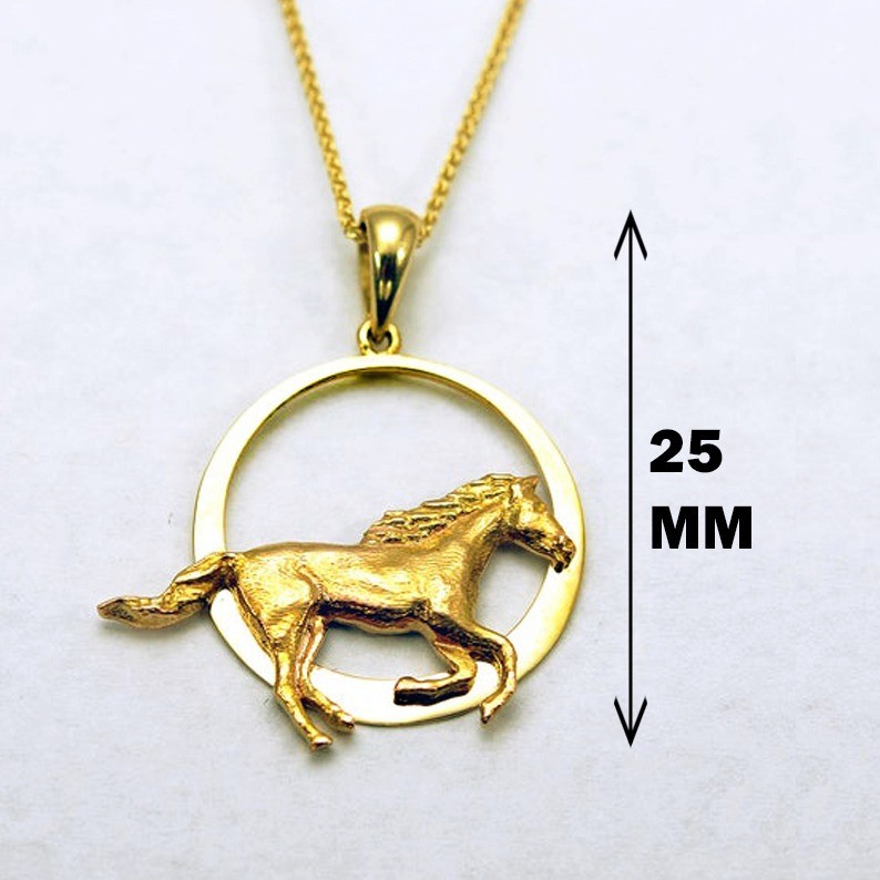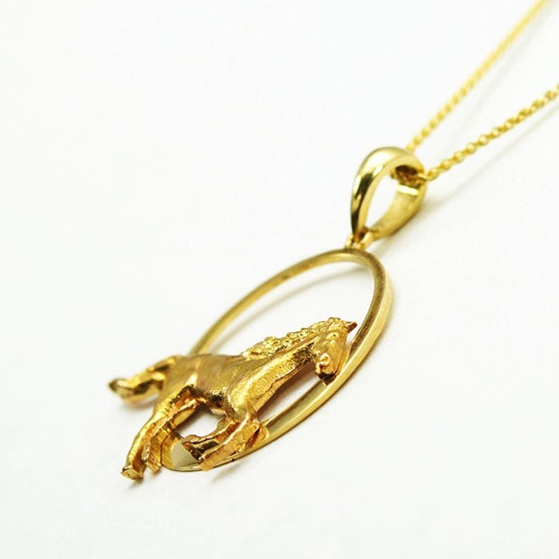 PRODUCT NAME: 18 Kt Real Solid Yellow Gold Running Horse In Circlet Chain Necklace Pendant